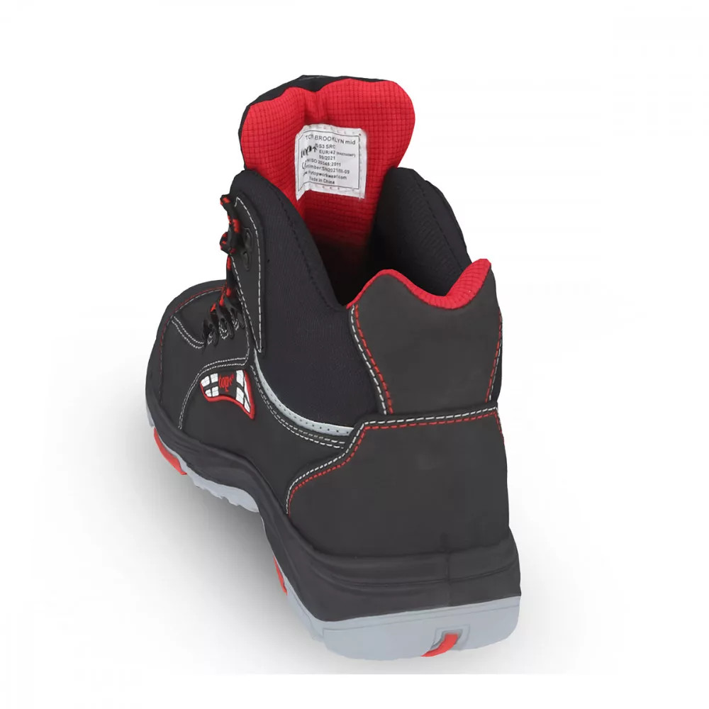 A nubuk bőr felsőrész vízlepergető és jól szellőző, míg a fényvisszaverő díszcsík fokozza a láthatóságot rosszabb fényviszonyok között is. A gumi/PU talp kiválóan tapad, csúszásgátló és olajálló tulajdonságokkal bír, így biztonságos minden környezetben.