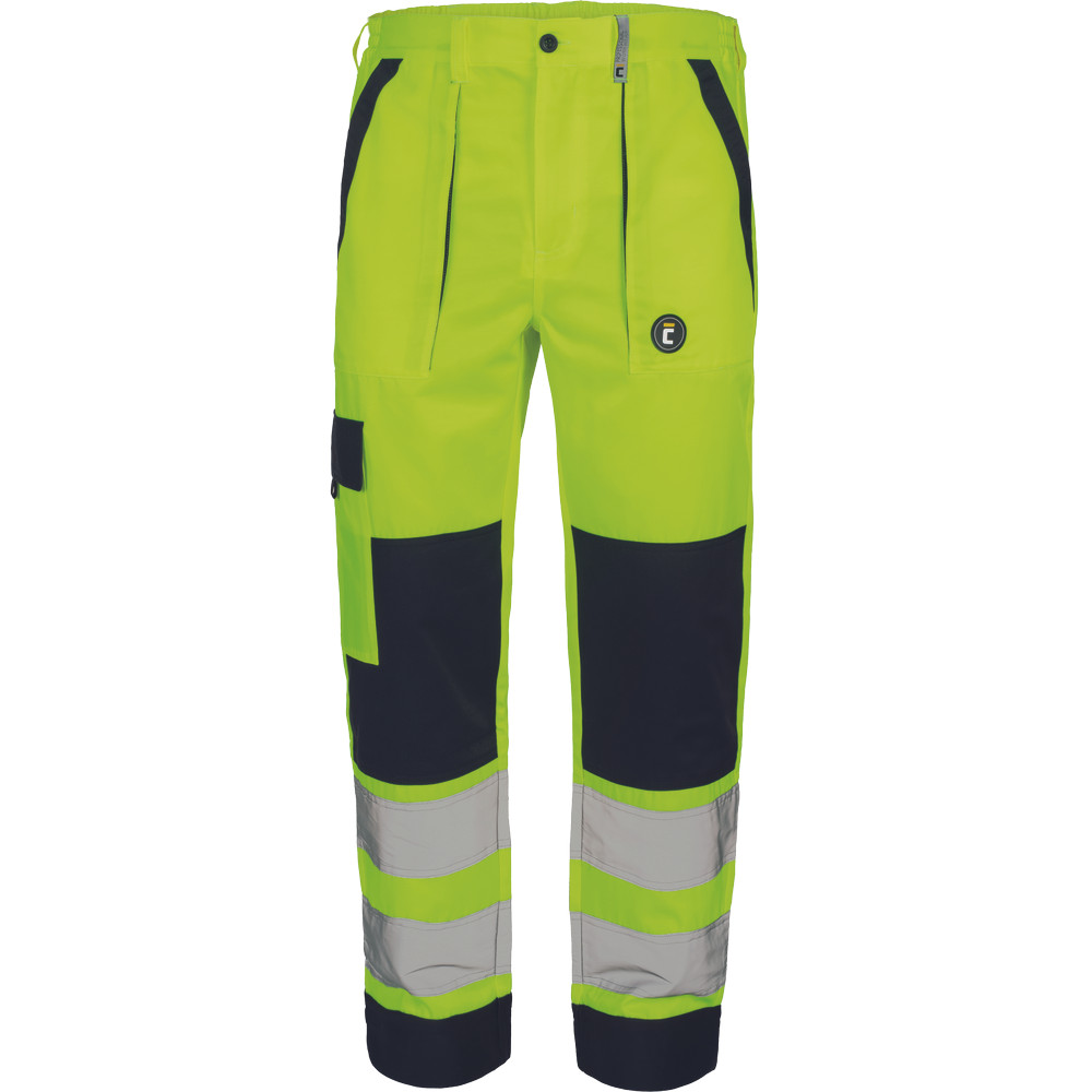 HI-VIS munkanadrág, amelyet kifejezetten a biztonságos és kényelmes munkavégzéshez terveztek. A rugalmas derékrész garantálja a kényelmet egész nap, míg a megerősített térdrész extra tartósságot ad a nagy igénybevételű helyeken.