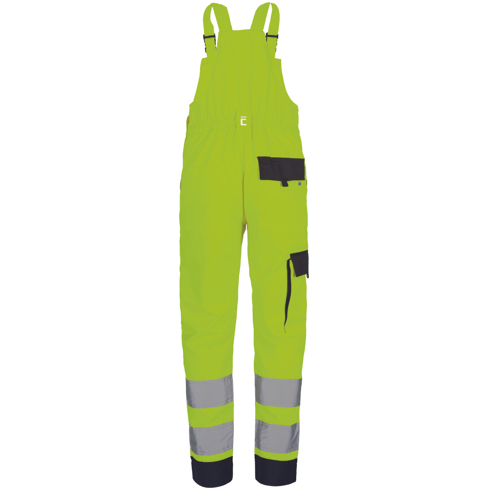 HI-VIS mellesnadrág rugalmas derékkal, széles pántokkal, műanyag csatokkal, amelyet kifejezetten a biztonságos és kényelmes munkavégzéshez terveztek. A rugalmas derékrész garantálja a kényelmet egész nap.