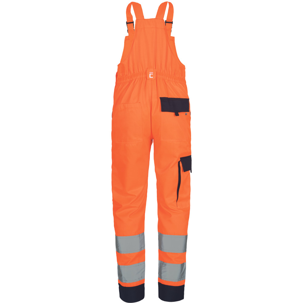 HI-VIS mellesnadrág rugalmas derékkal, széles pántokkal, műanyag csatokkal, amelyet kifejezetten a biztonságos és kényelmes munkavégzéshez terveztek. A rugalmas derékrész garantálja a kényelmet egész nap.