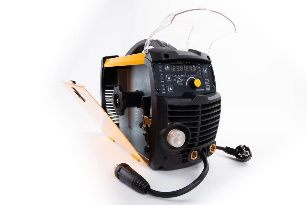 Olyan ügyfeleink számára ajánljuk akik egy multifunkcionális könnyen beállítható MIG-MAG fogyóelektródás " CO"  hegesztőgépet szeretnének. Szinergikus funkciójának köszönhetően az alap hegesztési paraméterek megadása szükséges csak, a gép automatikusan hozzáadja a szükséges további beállításokat. 160 amper teljesítményű, könnyen mozgatható hegesztő berendezés bevont elektróda, fogyó elektródás védőgázos és wolfram elektródás hegesztési feladatokhoz. Egy fázisú 230 V-ról üzemeltethető. 5 kg-os 0,6 mm, 0.8 mm, és 1,0 mm-es normál, vagy porbeles hegesztőhuzallal használható. A MIG-MAG munkakábel, MMA munkakábel elektróda fogóval, testkábel és a nyomáscsökkentő reduktor tartozéka a berendezésnek!