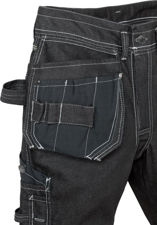 • CORDURA erősítésű colstoktartó zseb szerszámtartó zsebbel, tollzsebbel, gombbal és bicskának való hurokkal
