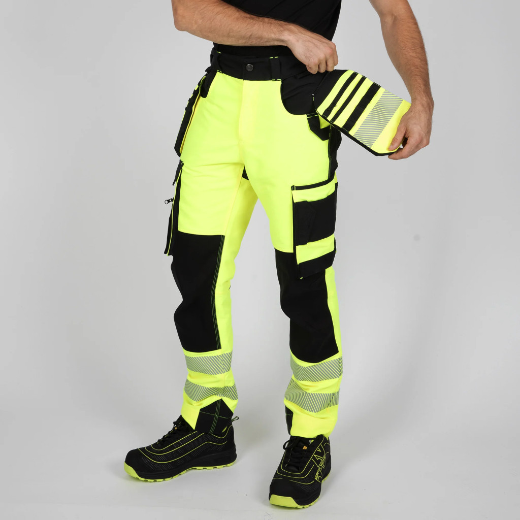 A ROCKET jól láthatósági nadrág biztonságot és kényelmet nyújt a terepen. A stratégiai kopási pontokon megerősített és rugalmas panelekkel ellátott, így tartós és szabad mozgást biztosít. Az EN ISO 20471 szabvány szerint tanúsított, magasított hátrésszel, Cordura® térderősítésekkel és több kivehető zsebbel ideális egész éves munkavégzésre!