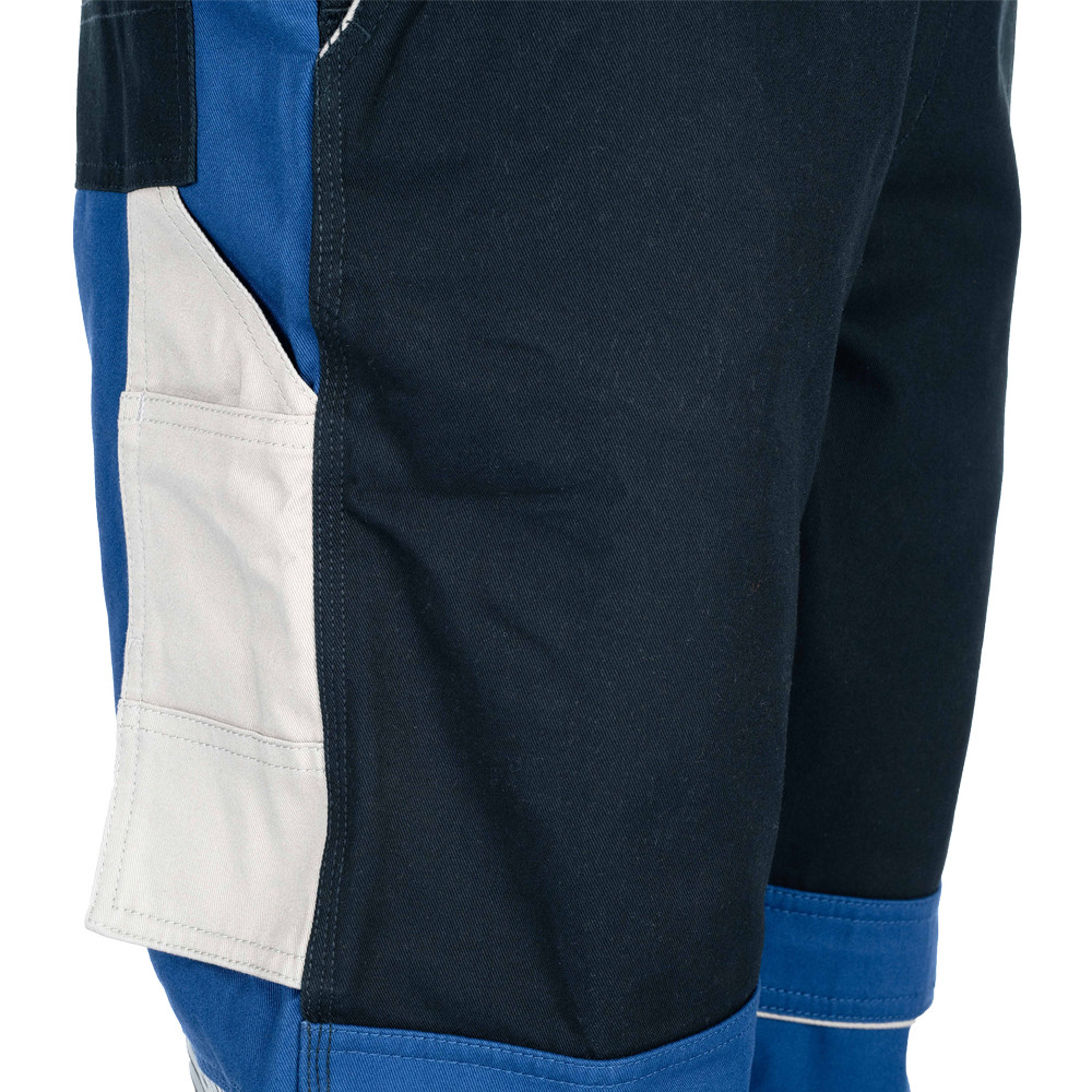 A megerősített térdrész térdvédő behelyezésére alkalmas, így extra védelmet nyújt azokon a munkaterületeken, ahol gyakori térdelésre van szükség. Összesen 5 funkcionális zseb áll rendelkezésre, melyeket szerszámtartó hurkokegészítenek ki – praktikus megoldás a legfontosabb eszközök kéznél tartásához.